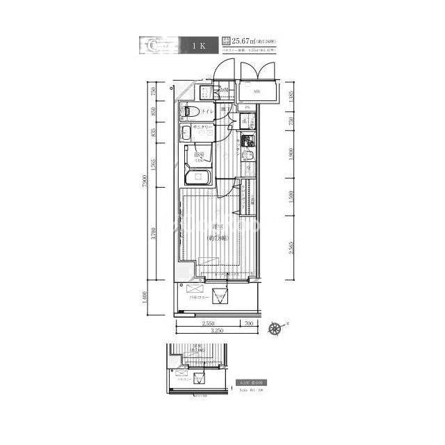 | 間取り | 1K | 専有面積 | 25.67㎡ |