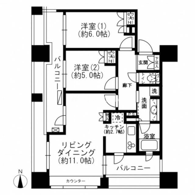 | 間取り | 2LDK | 専有面積 | 56.5㎡ |