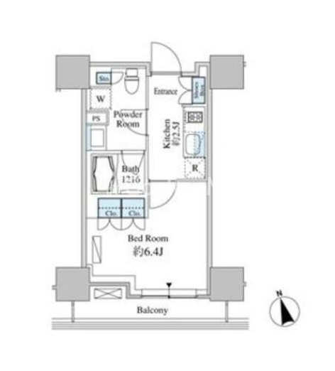 | 間取り | 1R | 専有面積 | 25.22㎡ |