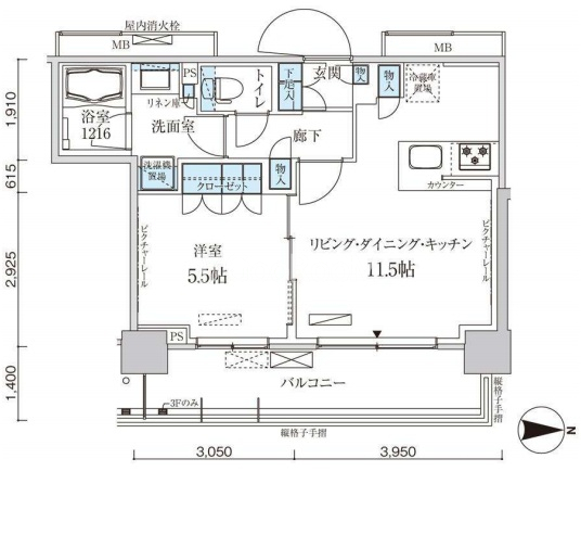 | 階数 | 3階 / 11階建 | 方位 | 東 |