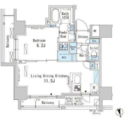 間取り | 1LDK | 専有面積 | 41.18㎡ |