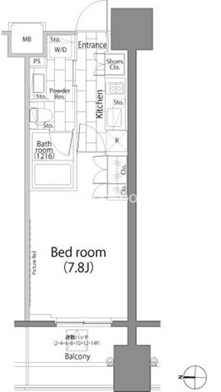 | 間取り | 1K | 専有面積 | 25.44㎡ |