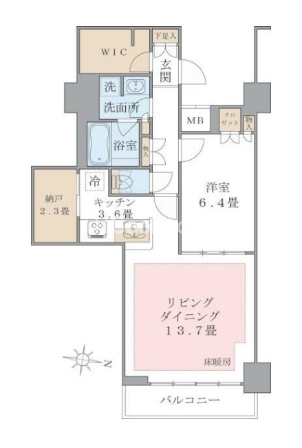 北向き、 広さ61.06㎡のお部屋です。