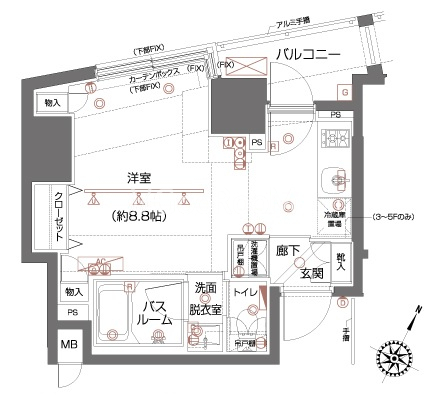 | 間取り | 1R | 専有面積 | 25.64㎡ |