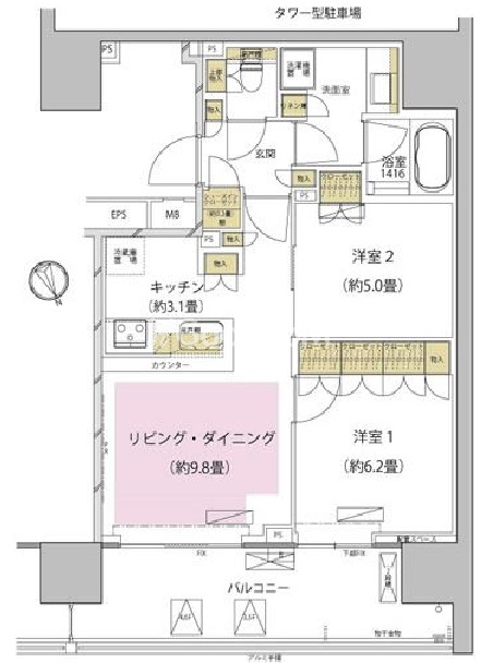 | 間取り | 2LDK | 専有面積 | 57.35㎡ |