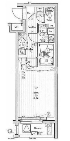| 間取り | 1K | 専有面積 | 25.71㎡ |