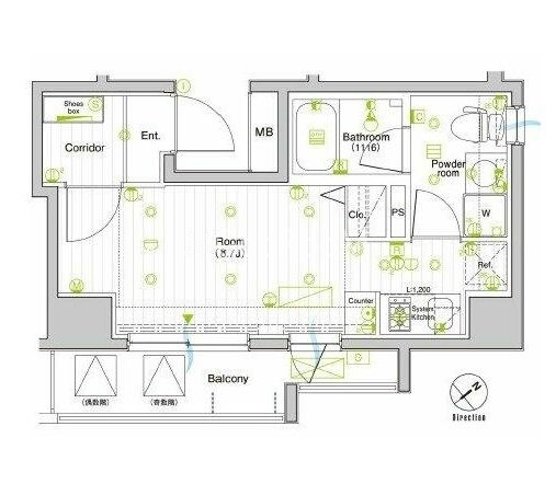 | 間取り | 1R | 専有面積 | 24.46㎡ |
