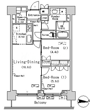 | 間取り | 2LDK | 専有面積 | 58.55㎡ |