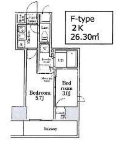 | 間取り | 2K | 専有面積 | 26.3㎡ |