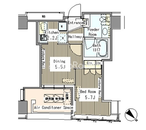 間取り | 1DK | 専有面積 | 31.42㎡ |