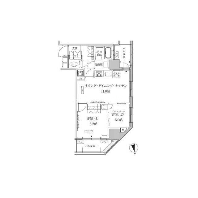 | 間取り | 2LDK | 専有面積 | 51.24㎡ |