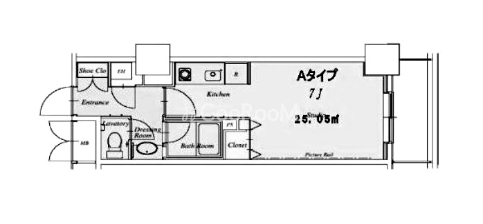 | 間取り | 1R | 専有面積 | 25.05㎡ |