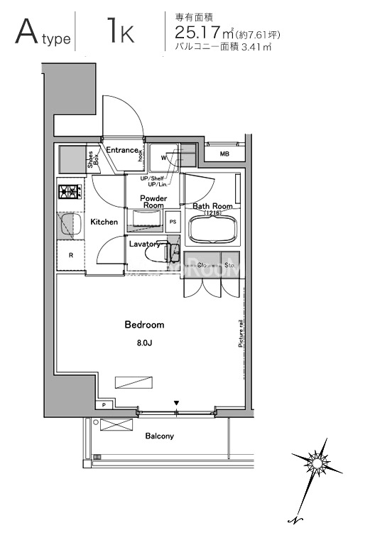 | 間取り | 1K | 専有面積 | 25.17㎡ |