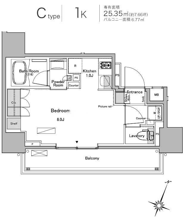 | 間取り | 1K | 専有面積 | 25.35㎡ |