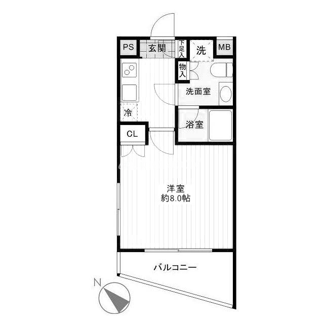 | 間取り | 1K | 専有面積 | 25.57㎡ |