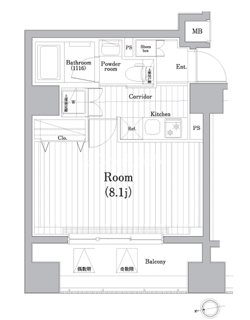 | 間取り | 1K | 専有面積 | 26.35㎡ |