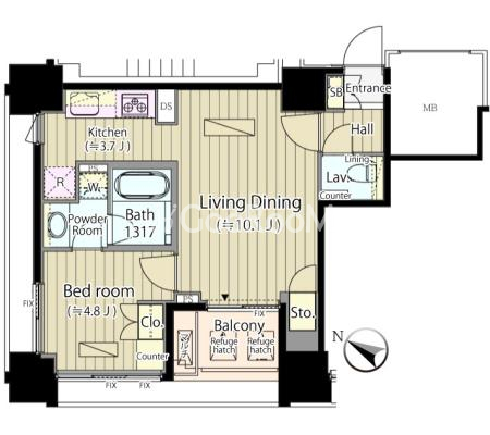 | 間取り | 1LDK | 専有面積 | 44.36㎡ |