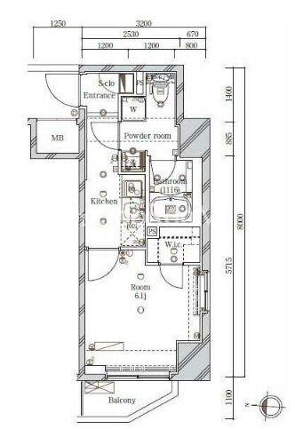 | 間取り | 1K | 専有面積 | 25.21㎡ |