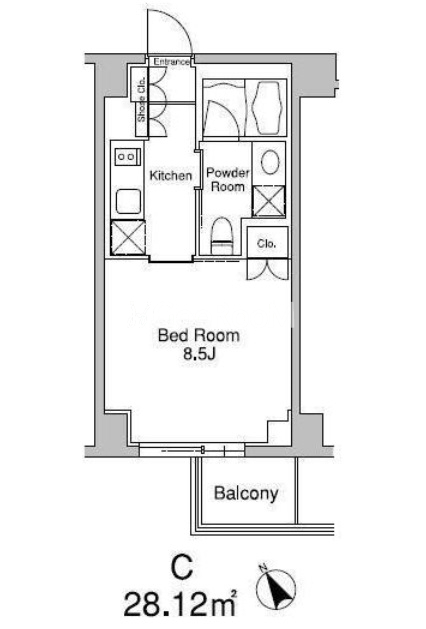 | 間取り | 1K | 専有面積 | 28.12㎡ |