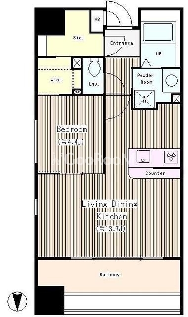 間取り | 1LDK | 専有面積 | 44.61㎡ |