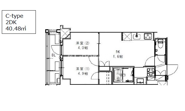 | 間取り | 2LDK | 専有面積 | 40.48㎡ |