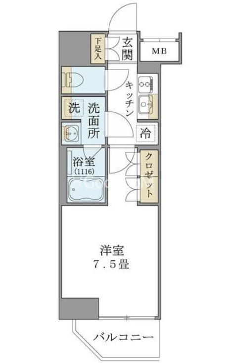 | 間取り | 1K | 専有面積 | 26.06㎡ |