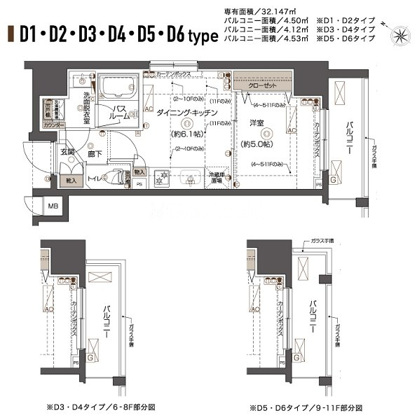 間取り | 1DK | 専有面積 | 32.14㎡ |