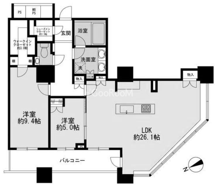 | 間取り | 2LDK | 専有面積 | 96.08㎡ |
