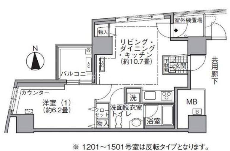 | 間取り | 1K | 専有面積 | 43.34㎡ |