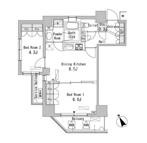 | 間取り | 2LDK | 専有面積 | 48.07㎡ |