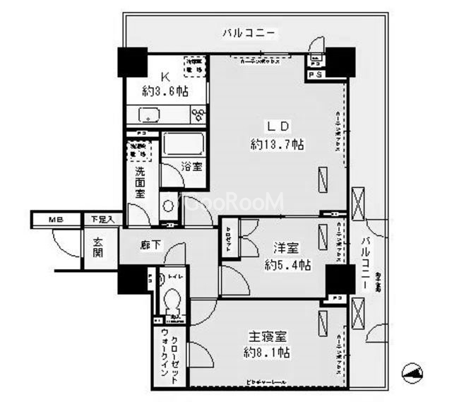| 間取り | 2LDK | 専有面積 | 68.82㎡ |