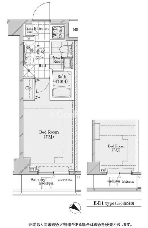 | 間取り | 1K | 専有面積 | 22.42㎡ - 22.51㎡ |