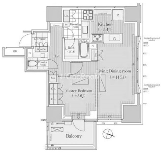 間取り | 1LDK | 専有面積 | 57.32㎡ |