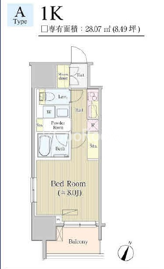 | 間取り | 1K | 専有面積 | 28.07㎡ |