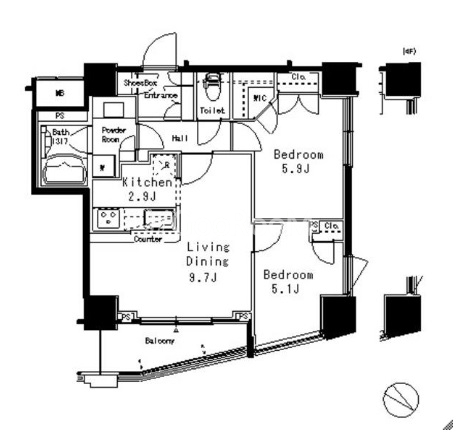 | 間取り | 2LDK | 専有面積 | 56.24㎡ |