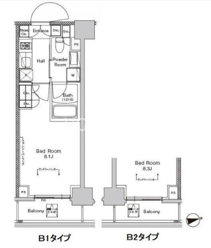 | 間取り | 1K | 専有面積 | 25.16㎡ - 25.43㎡ |