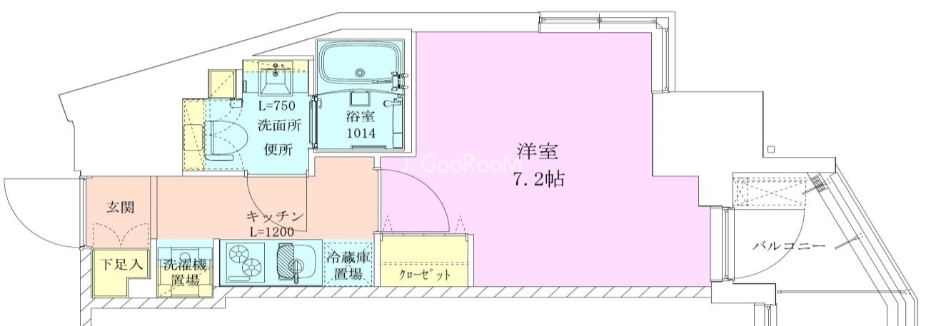 | 間取り | 1K | 専有面積 | 23.98㎡ |