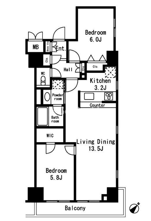 | 間取り | 2LDK | 専有面積 | 62.48㎡ |