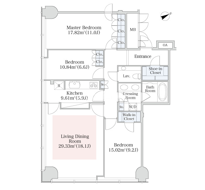 | 階数 | 9階 / 地上33階 (地下2階) | 方位 | 南東 |