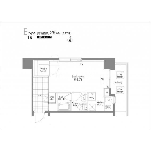 | 間取り | 1R | 専有面積 | 29.02㎡ |