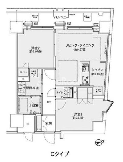 | 間取り | 2LDK | 専有面積 | 56.83㎡ |