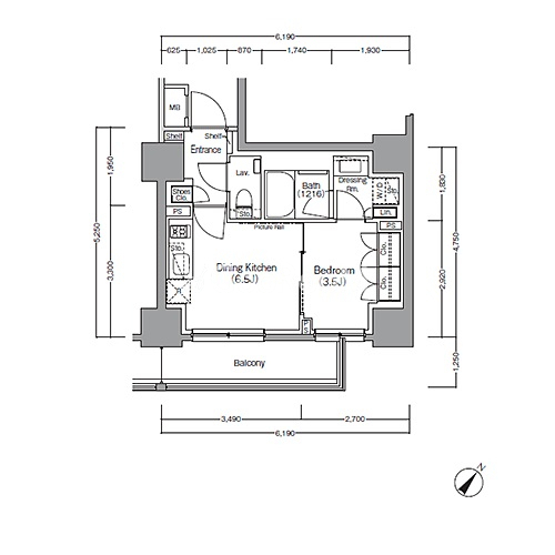 | 間取り | 1DK | 専有面積 | 30.4㎡ |