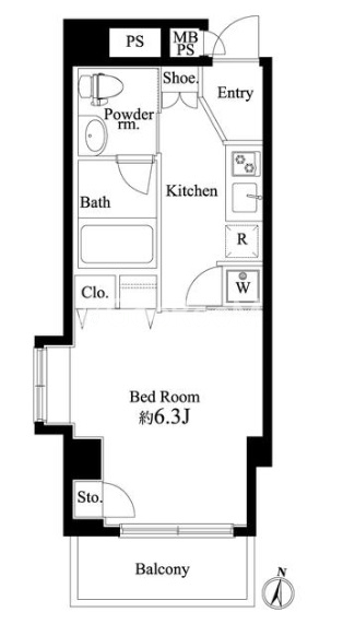 | 間取り | 1K | 専有面積 | 23.32㎡ |