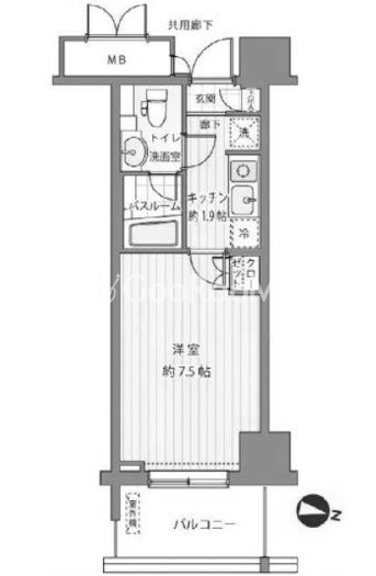 | 間取り | 1K | 専有面積 | 23.41㎡ |