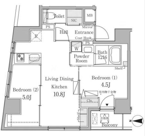 | 間取り | 2LDK | 専有面積 | 44.98㎡ |