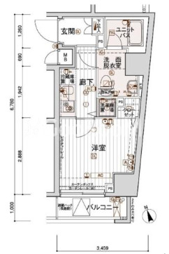 | 間取り | 1K | 専有面積 | 21.83㎡ |