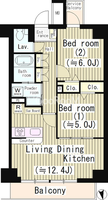 | 間取り | 2LDK | 専有面積 | 53.58㎡ |