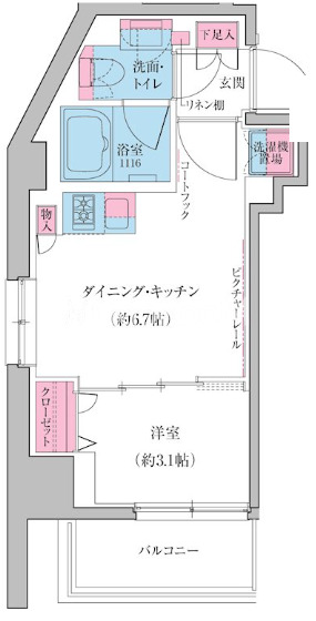 | 間取り | 1DK | 専有面積 | 25.08㎡ |