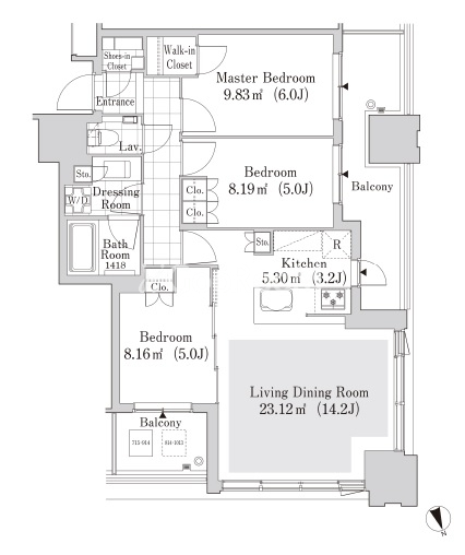 | 階数 | 8階 / 地上23階 (地下1階) | 方位 | 北 |