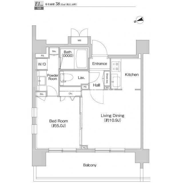 | 間取り | 1LDK | 専有面積 | 38.51㎡ |